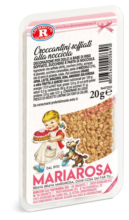 Nota croccante nota di nocciola sui dolci elegante fa subito gola. I croccantini sono soffiati alla pasticceria, son dedicati